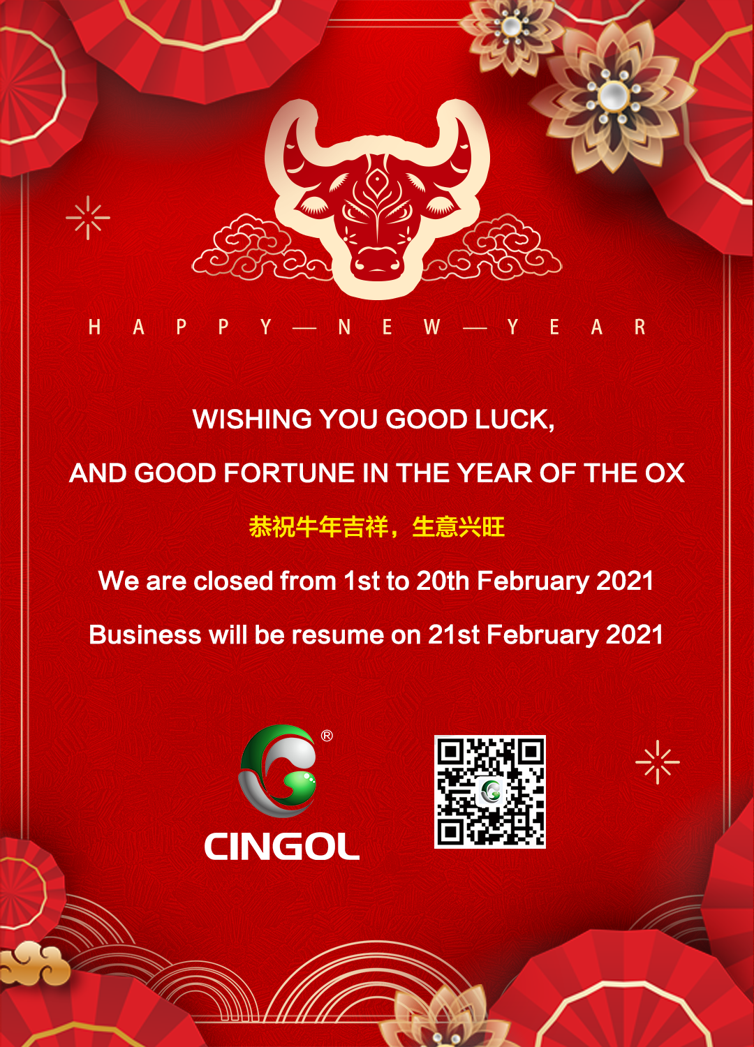Cingol te desea buena suerte en el año del BUEY 2021