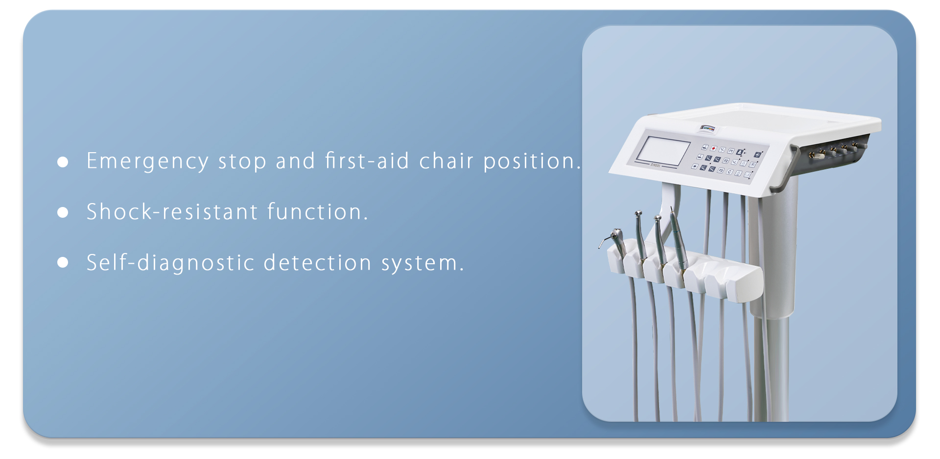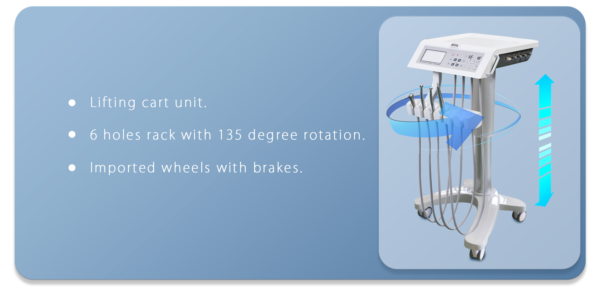 Sistema de elevación eléctrica de la bandeja principal de instrumentos.